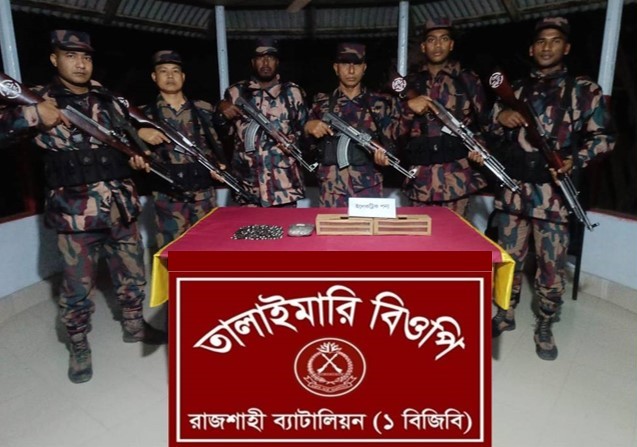 গত ১৬ ফেব্রুয়ারি ২০২৬ তারিখ আনুমানিক ২০৫০ ঘটিকায় রাজশাহী ব্যাটালিয়ন (১ বিজিবি) এর অধীনস্থ তালাইমারী বিওপি’র নিয়মিত টহল দল টহল পরিচালনা সময় গোপন তথ্যের ভিত্তিতে জানতে পারে যে, রাজশাহী জেলার মতিহার থানাধীন ফুলতলা ঘাট নামক এলাকার পদ্মা নদীর চড় হতে কিছু চোরাচালানী মালামাল পাচার হবে।
